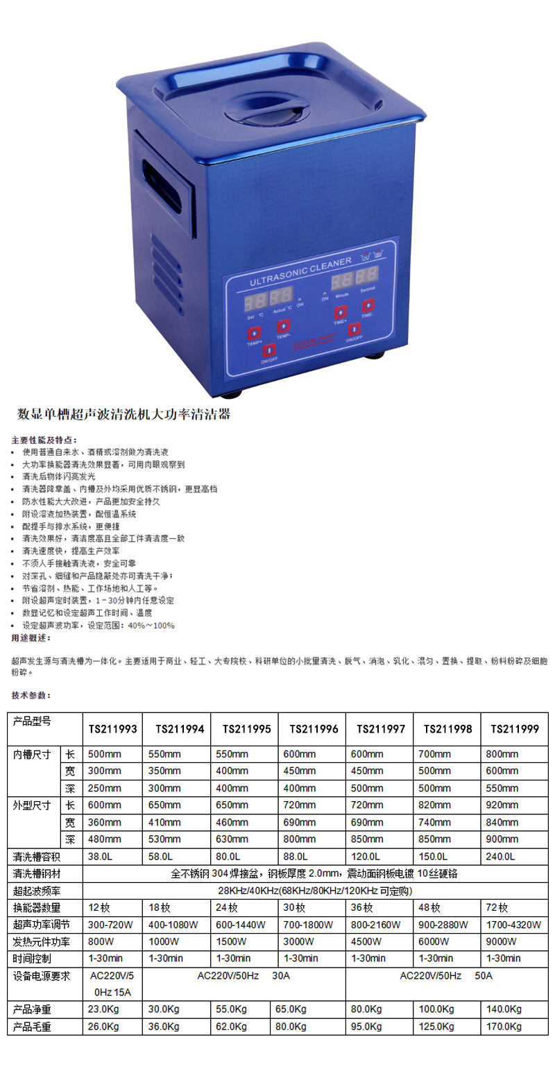 规格:  清洗槽容积38.0L 制造商型号:  TS211993