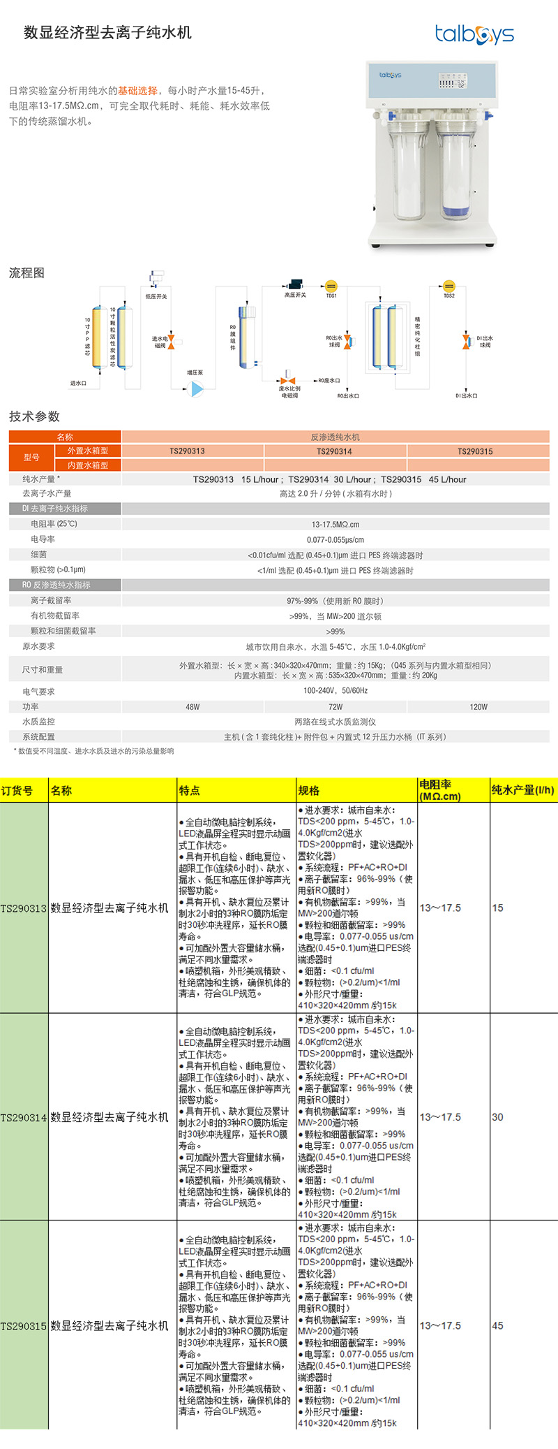 · 全自动微电脑控制系统,LED液晶屏全程实时显示动画式工作状态。 · 具有开机自检、断电复位、超限工作(连续6小时)、缺水、漏水、低压和高压保护等声光报警功能。 · 具有开机、缺水复位及累计制水2小时的3种RO膜防垢定时30秒冲洗程序,延长RO膜寿命。 · 可加配外置大容量储水桶,满足不同水量需求。 · 喷塑机箱,外形美观精致、杜绝腐蚀和生锈,确保机体的清洁,符合GLP规范。