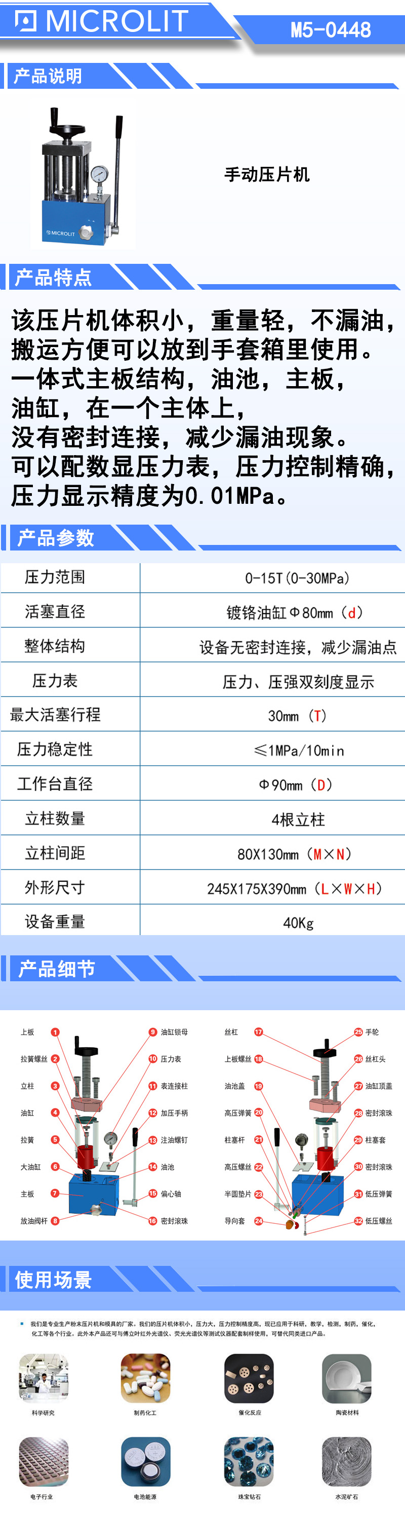 *该压片机体积小,重量轻,不漏油,搬运方便可以放到手套箱里使用
