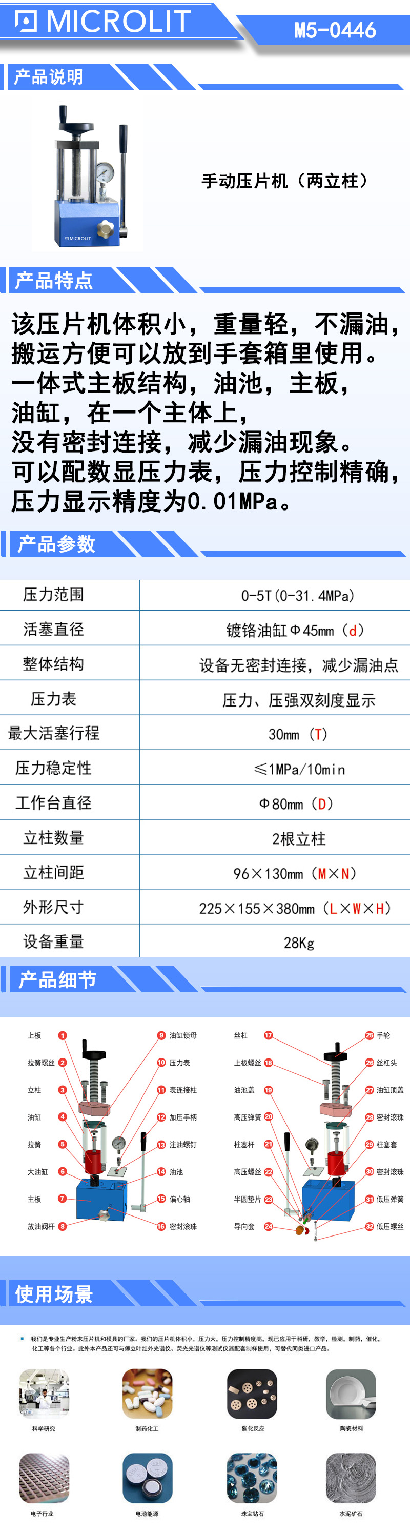 *该压片机体积小,重量轻,不漏油,搬运方便可以放到手套箱里使用