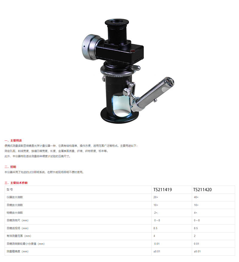 规格:  仪器放大倍数40X 制造商型号:  TS211420