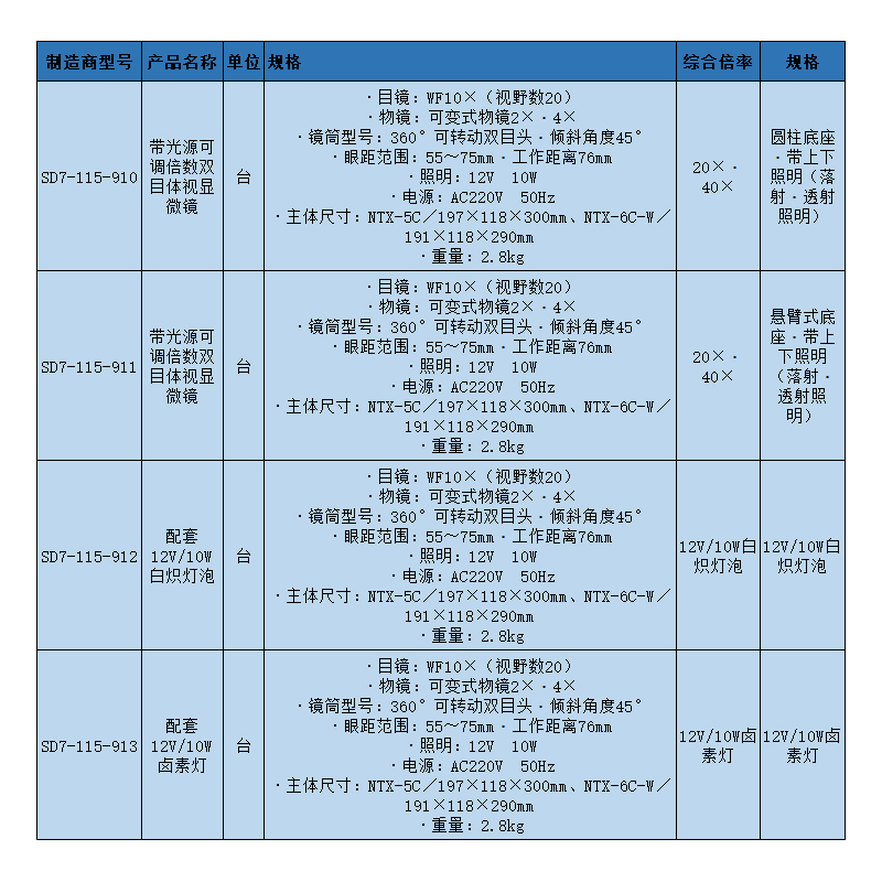 SLAMED 带光源可调倍数双目体视显微镜 综合倍率20X·40X,悬臂式底座落射·投射照明 SD7-115-911