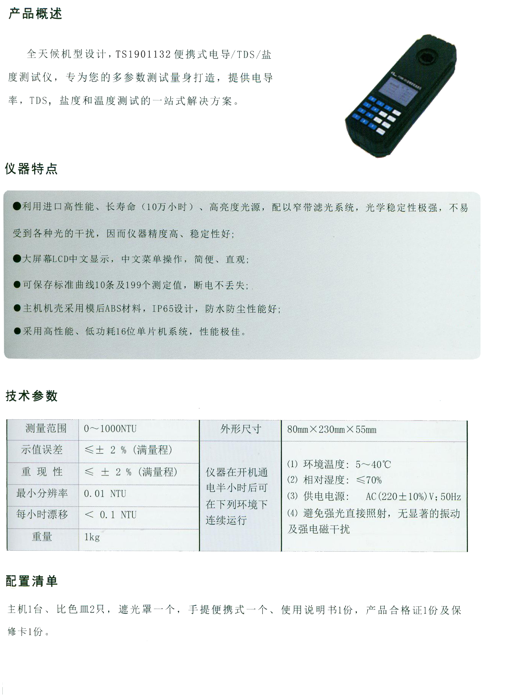 规格:  0~1000NTU 制造商型号:  TS1901132