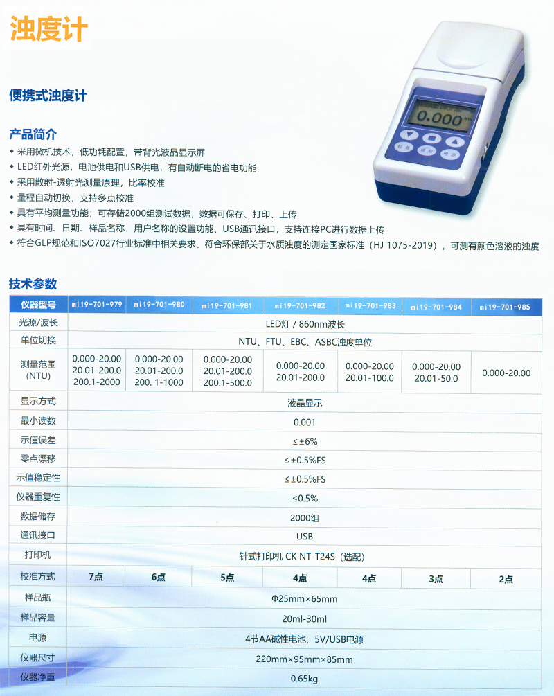 K01962 mi19-701-979 0.000-20.00,20.01-200.0,200.1-2000 ≤±6% 20-30ml 220×95×85mm 15600.00