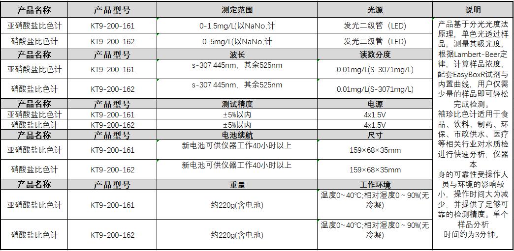 规格:  测定范围0~1.5mg/L 制造商型号:  KT9-200-161