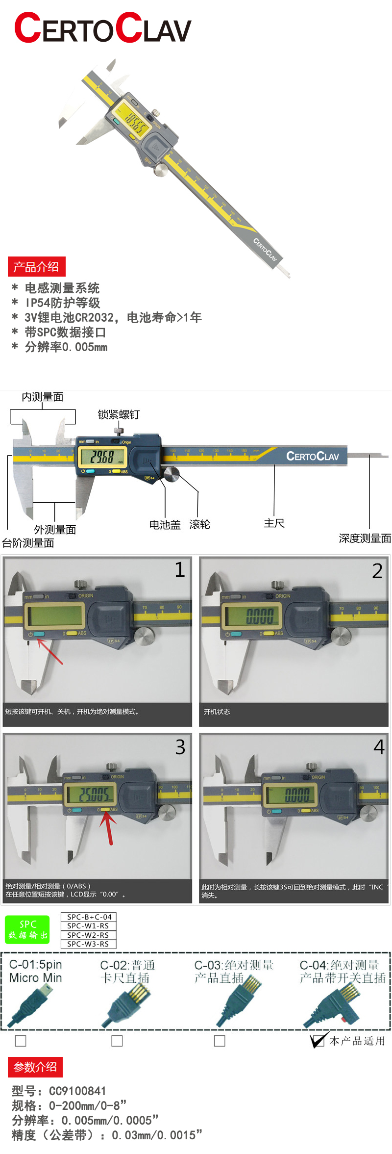 ·硬度不锈钢尺身 ·经过研磨的导轨面 ·电池寿命正常使用寿命达3年 ·原点设置,调零,自动电源开/关 ·带锁紧螺钉 ·带滑动防尘板 ·用于测量外径、内径、深度和阶差