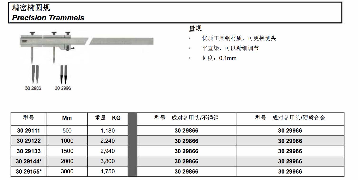 ·优质工具钢材质.可 更换测头平直梁. 可以精 细调节