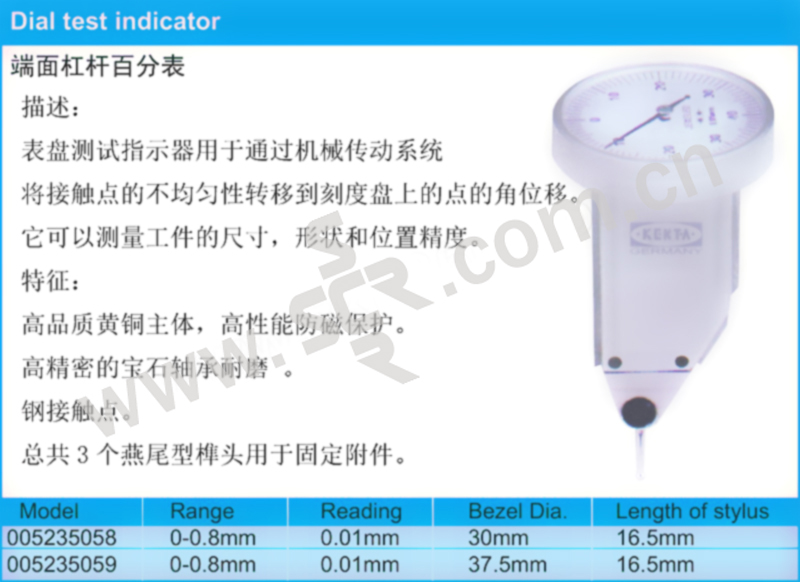 端面杠杆百分表 005235058 0~0.8mm 1个