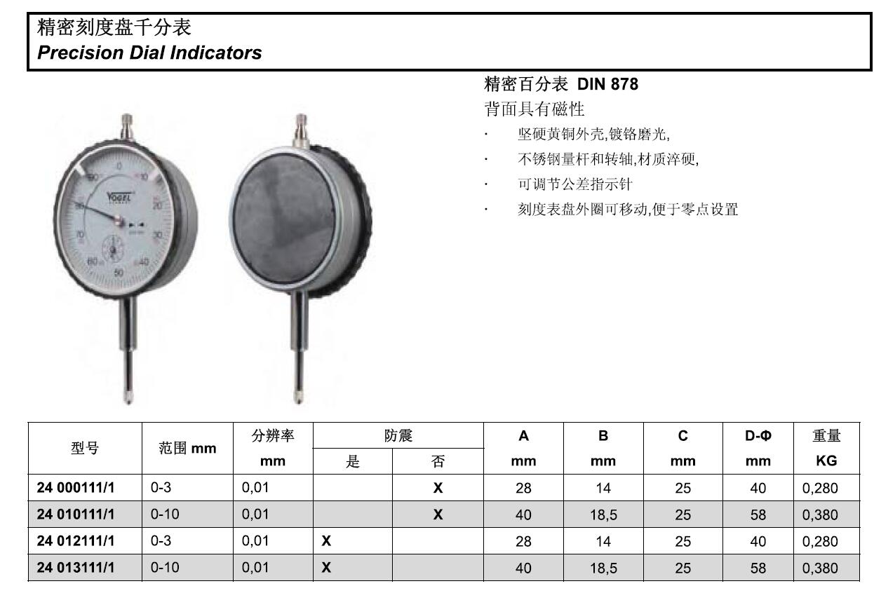 订货号 制造商型号 测量范围 分度值 表盘读数 每圈行程 表盘直径 测力 轴套直径 分辨率 防震 A B 价格 购物车