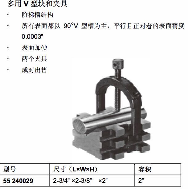 ·阶梯槽结构 ·所有表面都以 90°V 型槽为主.平行且正对着的表面精度 0.0003" ·表面加硬 ·两个夹具成对出售