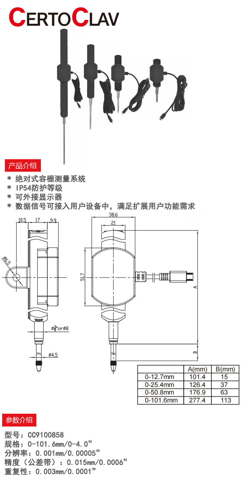 0-25.4mm 0-1.0"不含显示器