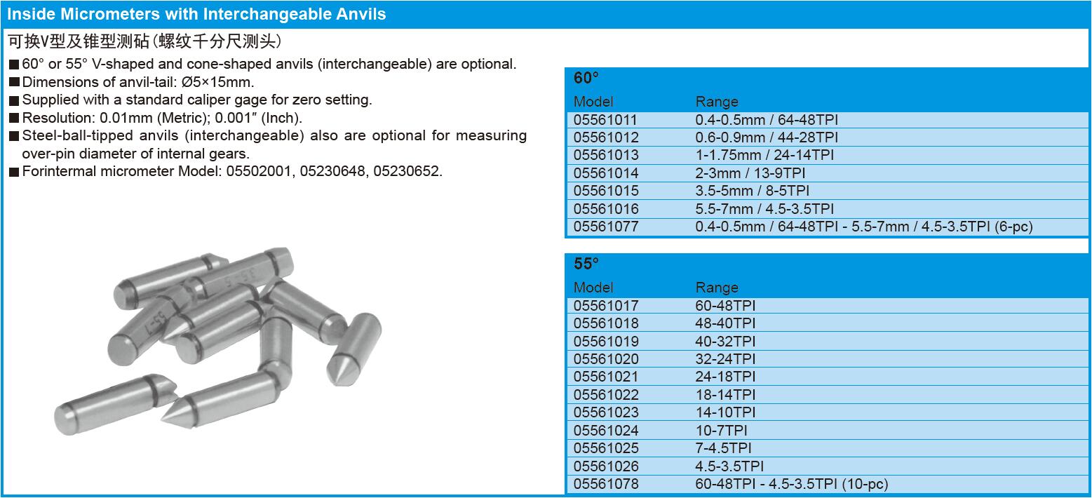 Inside Micrometers with Interchangeable Anils