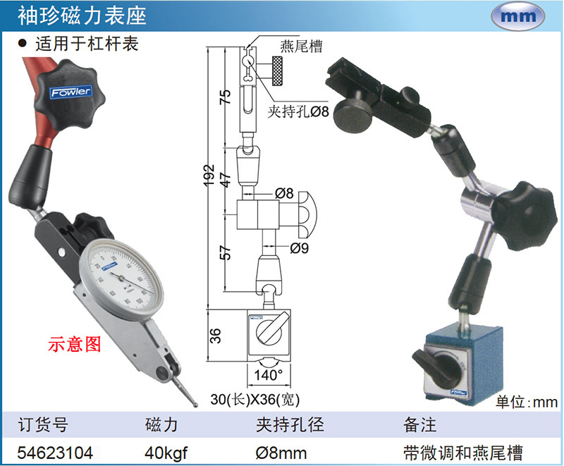 FOWLER 袖珍磁力表座 54623104 40kgf