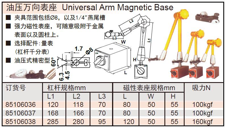 订货号 制造商型号 上杆长 下杆长 吸力 装表螺孔直径 底座尺寸(长×宽×高) 重量 L2 价格 购物车