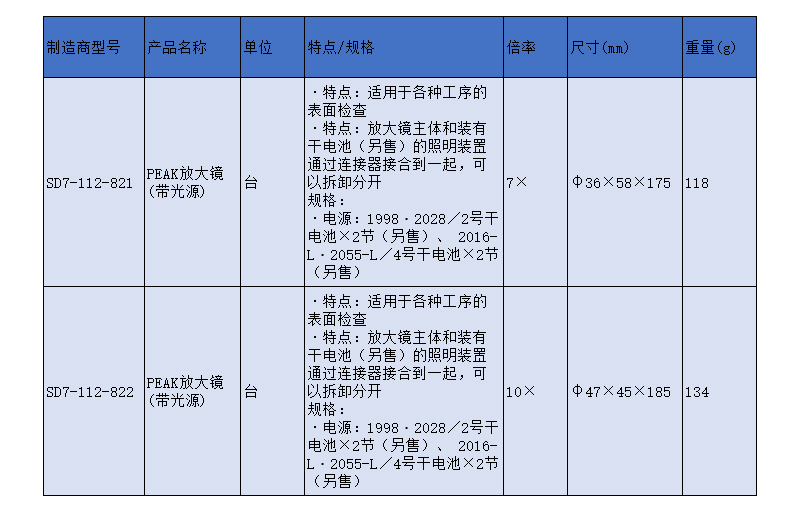 SLAMED PEAK放大镜(带光源) 7X 尺寸φ36×58×175mm