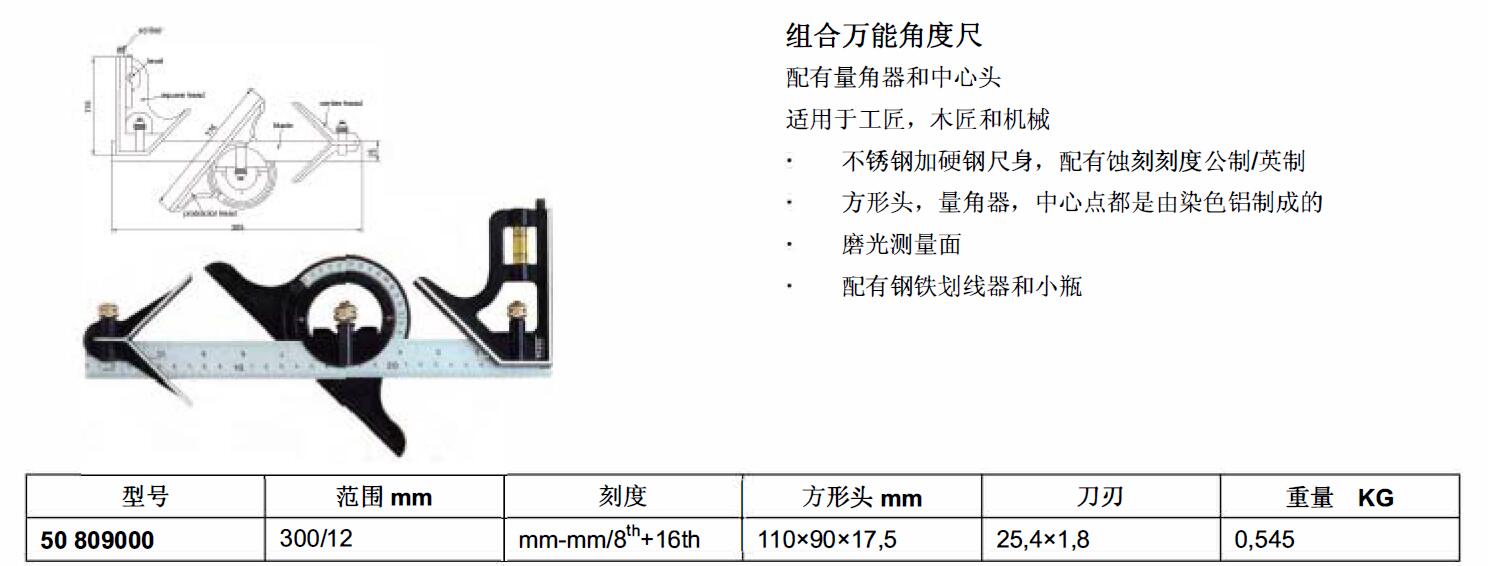 ·配有量角器和中心头
