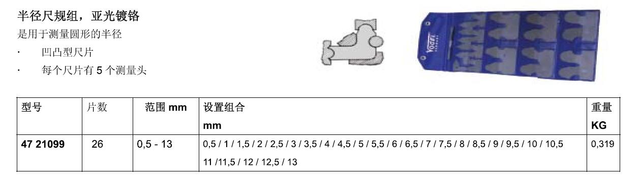 订货号 制造商型号 测量范围 数量 精度 包含的尺片半径 设置组合 重量 价格 购物车