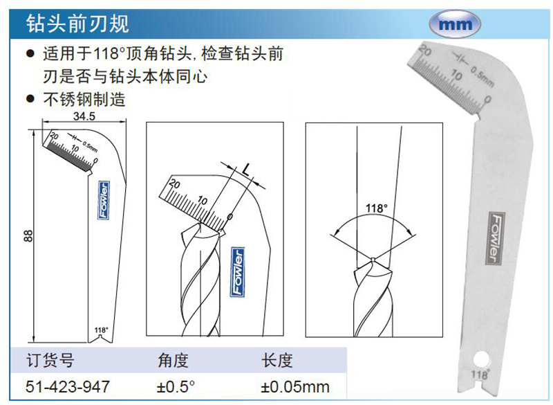 ·适用于118°顶角钻头,检查钻头前