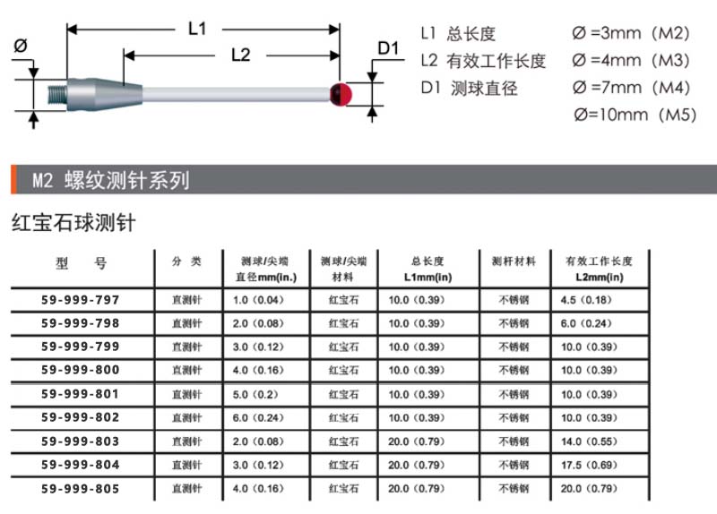 测头/尖端材料红宝石