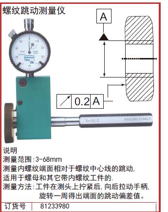 ·测量内螺纹端面相对于螺纹中心线的跳动,适用于螺母和其它带内螺纹工件的.