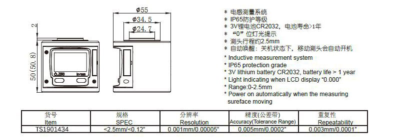 规格:  <2.5mm/<0.12” 制造商型号:  TS1901434