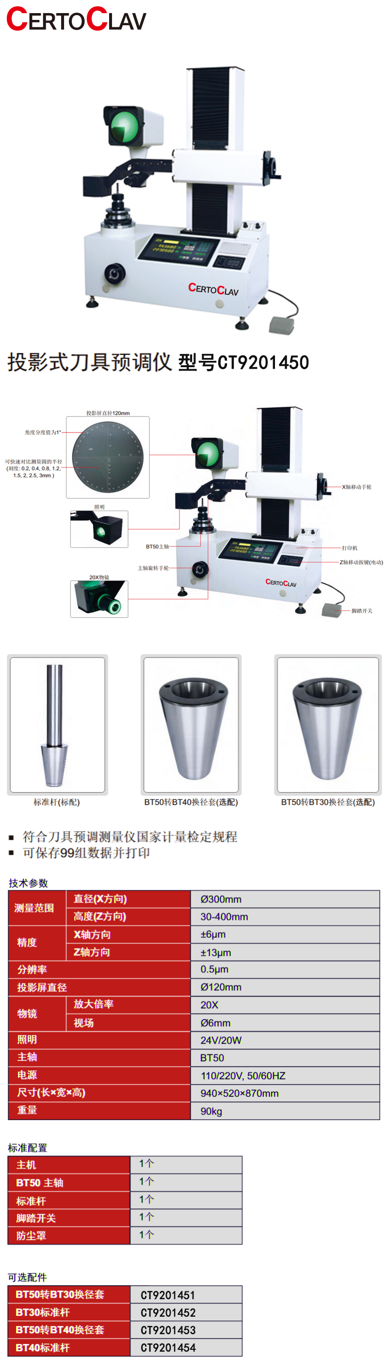 ·符合刀具预调测量仪国家计量检定规程; ·X轴移动手轮,Z轴移动按键(电动); ·可保存99组数据并打印。