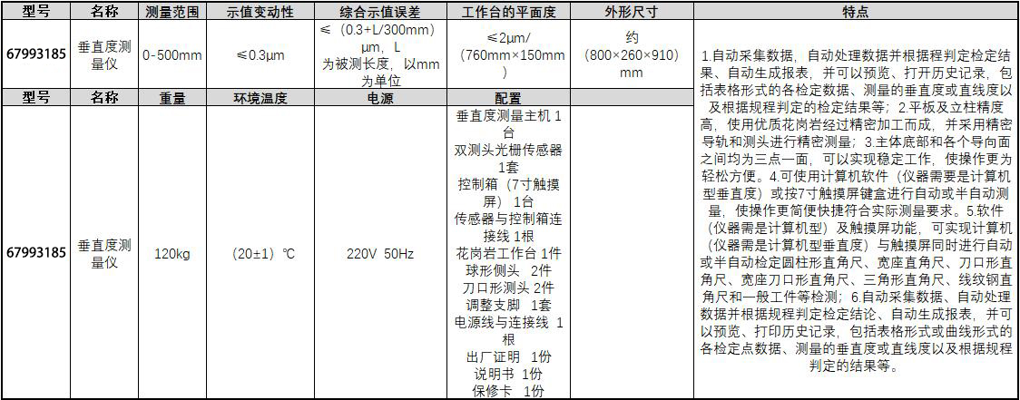 ·自动采集数据,自动处理数据并根据程判定检定结果、自动生成报表,并可以预览、打开历史记录,包括表格形式的各检定数据、测量的垂直度或直线度以及根据规程判定的检定结果等; ·平板及立柱精度高,使用优质花岗岩经过精密加工而成,并采用精密导轨和测头进行精密测量; ·主体底部和各个导向面之间均为三点一面,可以实现稳定工作,使操作更为轻松方便。· ·可使用计算机软件(仪器需要是计算机型垂直度)或按7寸触摸屏键盒进行自动或半自动测量,使操作更简便快捷符合实际测量要求。 ·软件(仪器需是计算机型)及触摸屏功能,可实现计算机(仪器需是计算机型垂直度)与触摸屏同时进行自动或半自动检定圆柱形直角尺、宽座直角尺、刀口形直角尺、宽座刀口形直角尺、三角形直角尺、线纹钢直角尺和一般工件等检测; ·自动采集数据、自动处理数据并根据规程判定检定结论、自动生成报表,并可以预览、打印历史记录,包括表格形式或曲线形式的各检定点数据、测量的垂直度或直线度以及根据规程判定的结果等。