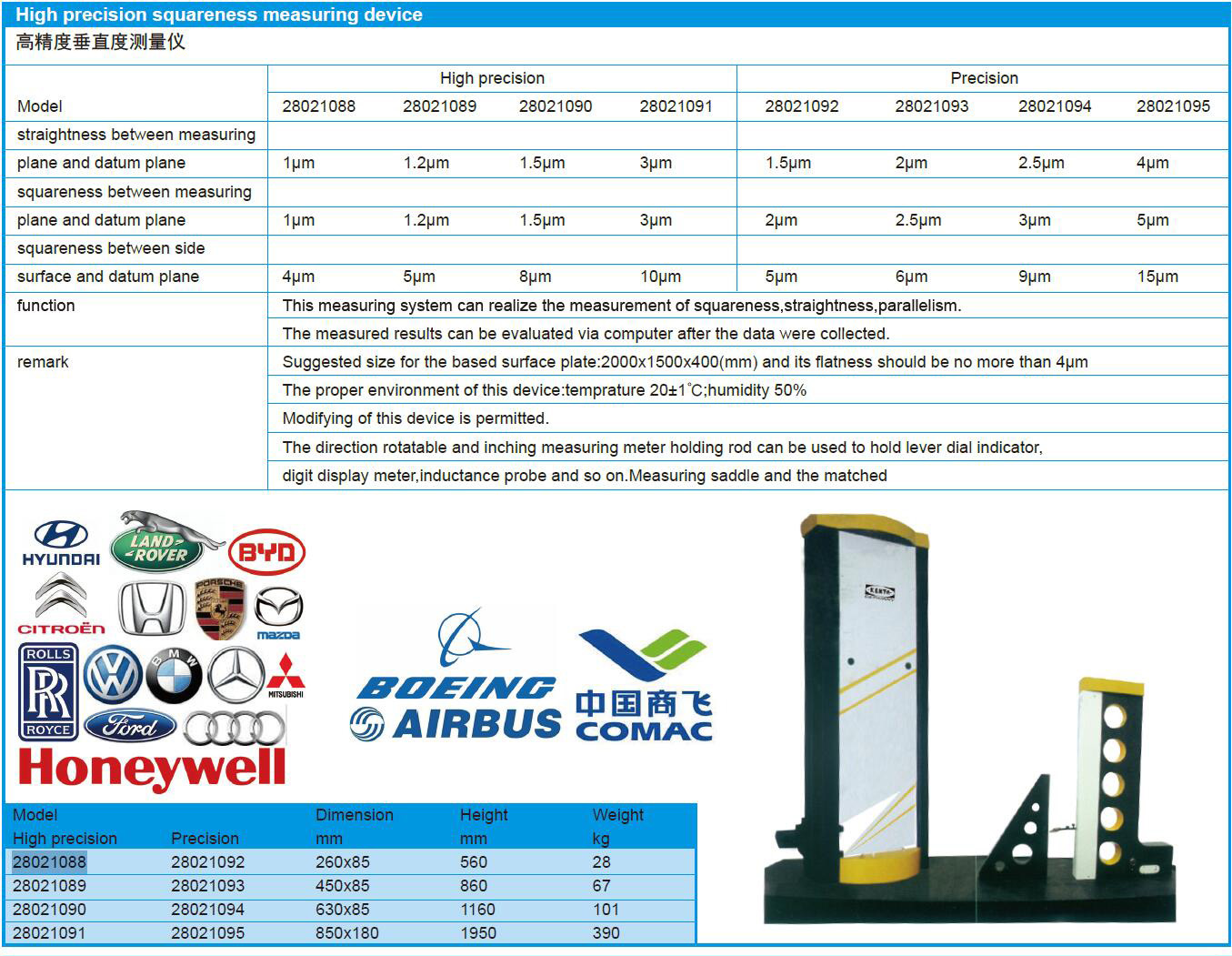 高精度垂直度测量仪 028021090 630×85mm 1台