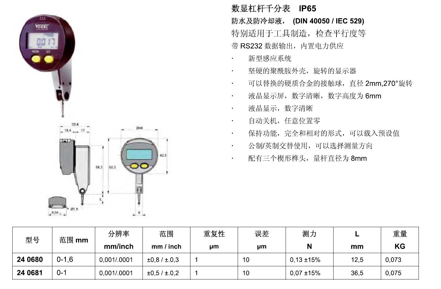 ·新型感应系统 ·坚硬的聚酰胺外壳·旋转的显示器 ·可以替换的硬质合金的接触球·直径2mm·270°旋转 ·液品显示屏·数字清晰·数字高度为6mm ·液品显示·数字清晰 ·自动关机·任意位置零 ·保持功能·完全和相对的形式·可以载入预设值 ·公制/英制交替使用·可以选择测量方向 ·配有三个楔形榫头·量杆直径为8mm