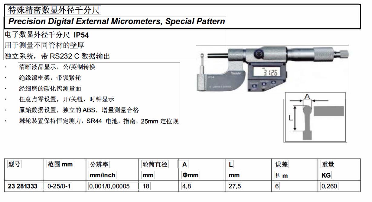 规格:  0-25mm/0-1(IP54) 制造商型号:  23 281333