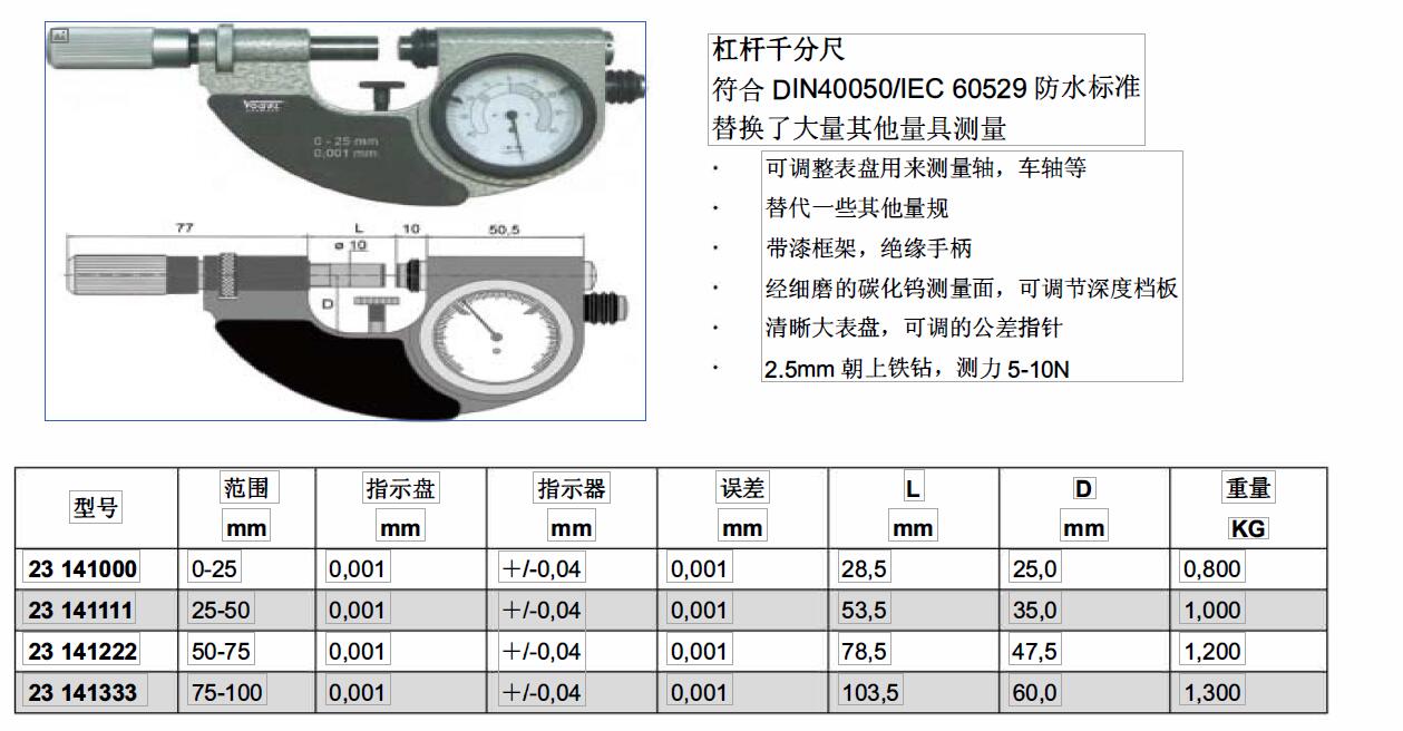 规格:  0-25 制造商型号:  23 141000