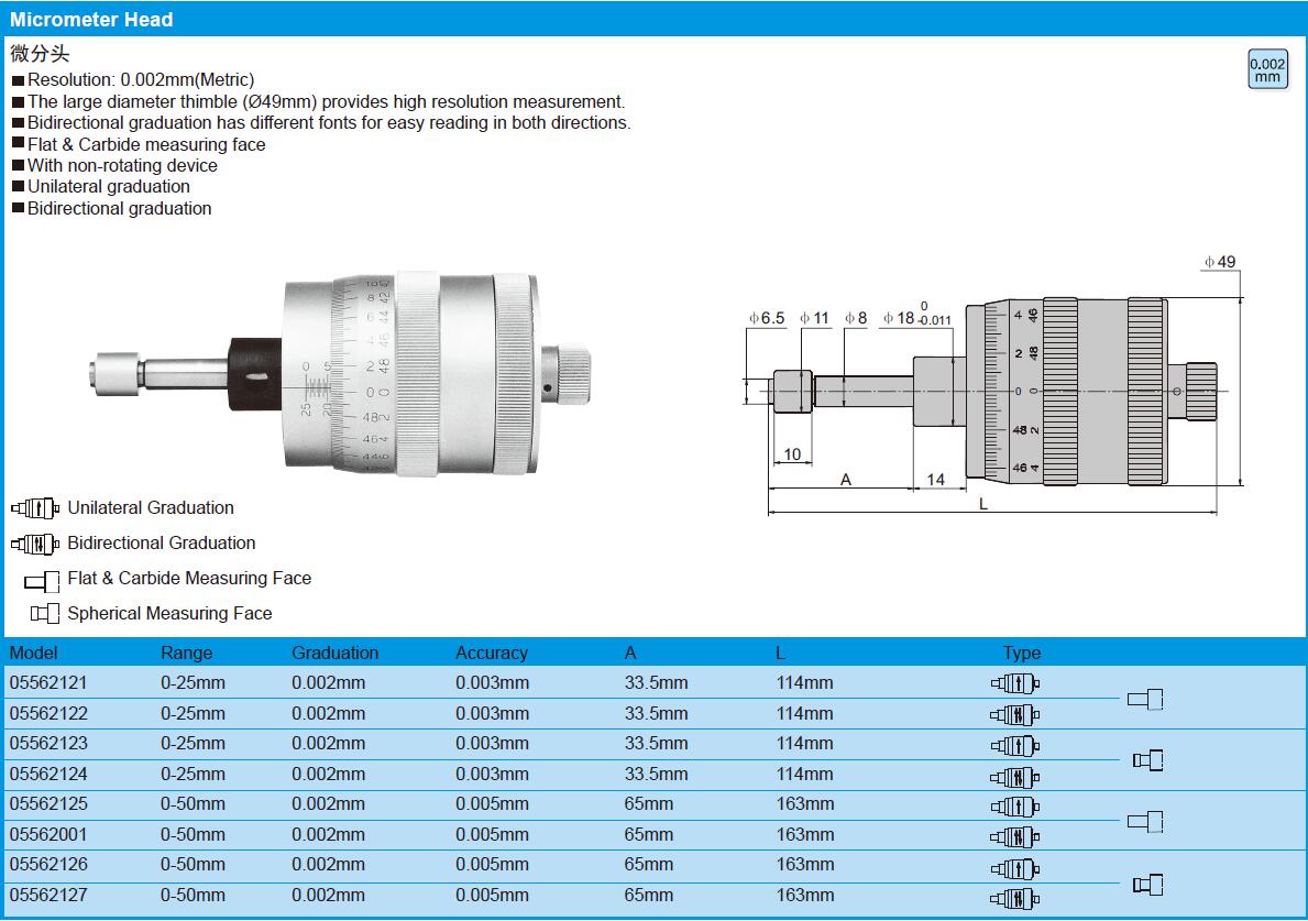 规格:  0-50mm (0.002mm) 制造商型号:  KT5-562-125