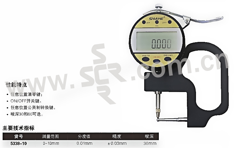 SHAHE/三和计量 数显百分管厚规 5338-10 0-10mm 0.01mm ±0.03mm 30mm 不代为第三方检测 1把