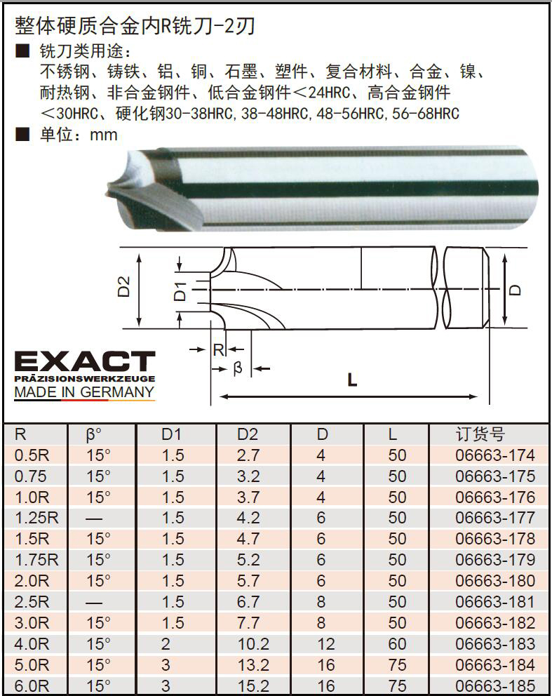 D22692 06663-180 1.5mm 2.0R 6mm 2 金属加工 圆柄 15° 1015.00