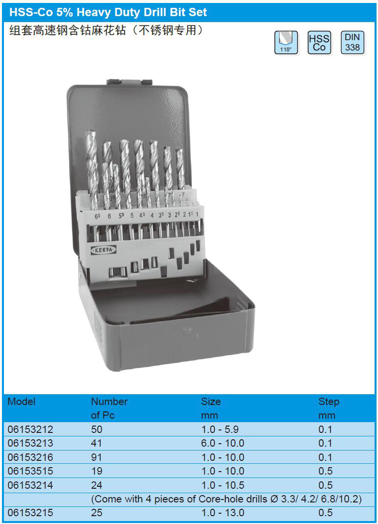 英文名称:  Hss -Co5%-Heay Duty Drill Bit Set