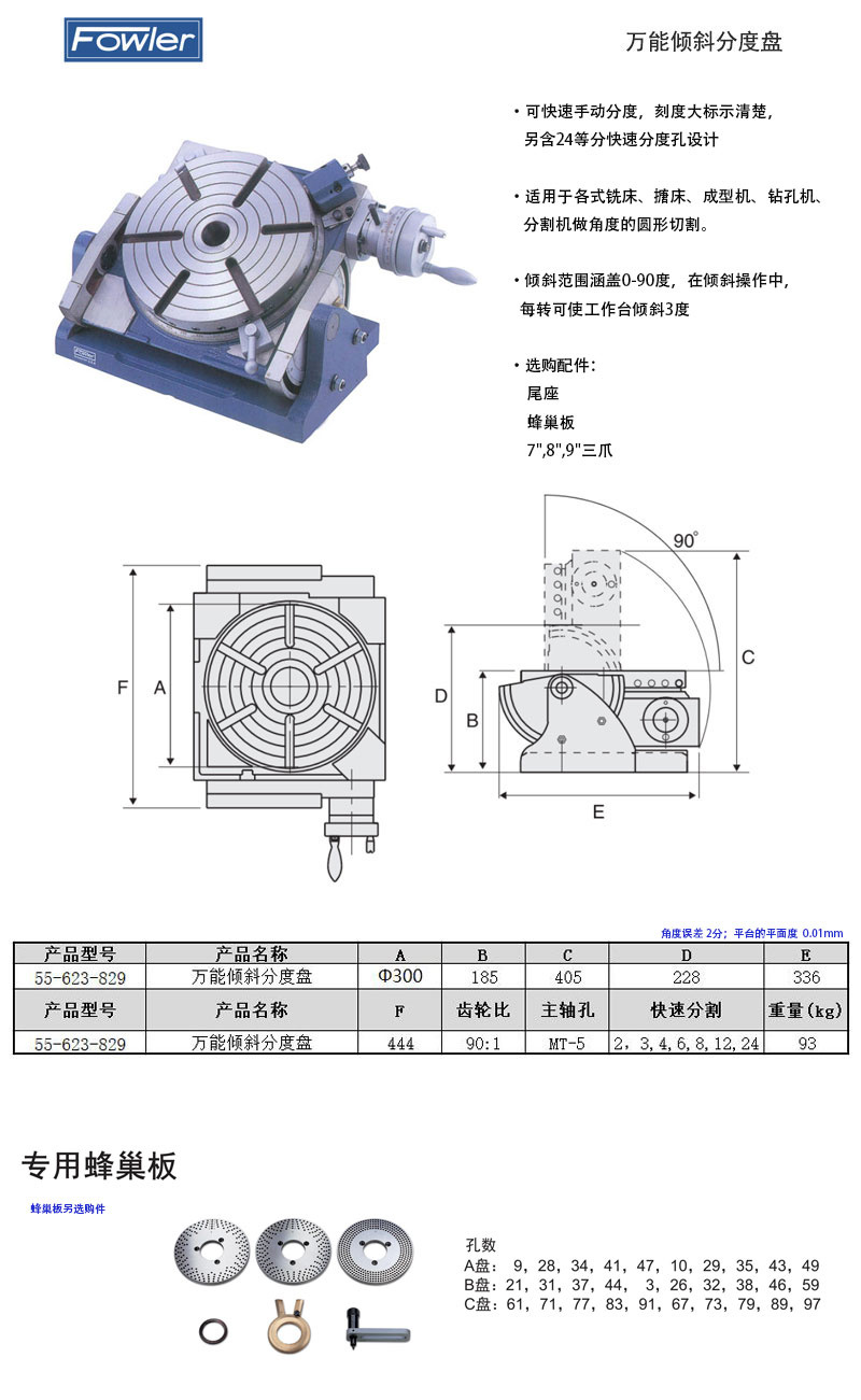 ·可快速手动安装,刻度大标示清楚,另含24等分快速分度孔设计 ·适用于各式铣床、搪床、成型机、钻孔机、分割机,做角度的圆形切割,倾斜范围涵盖0~90度,在倾斜操作中,每转可使工作台倾斜3度