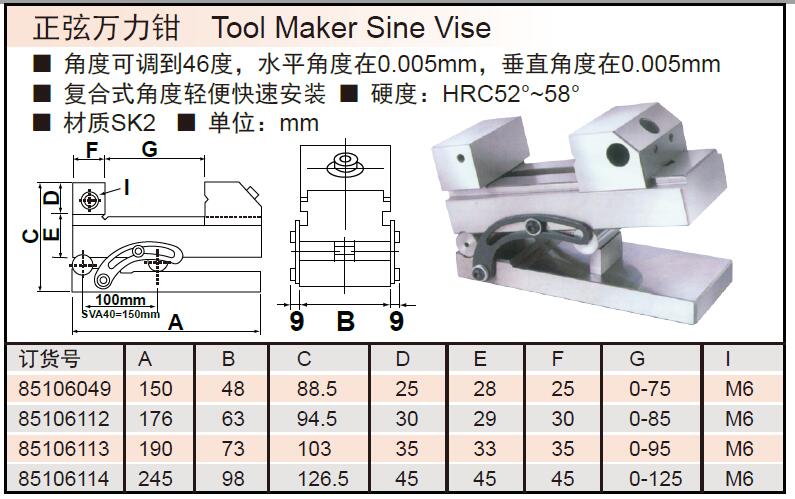 ·角度可调到46度,水平角度在0.005mm,垂直角度在0.005mm ·复合式角度轻便快速安装 ·硬度:HRC52°~58°