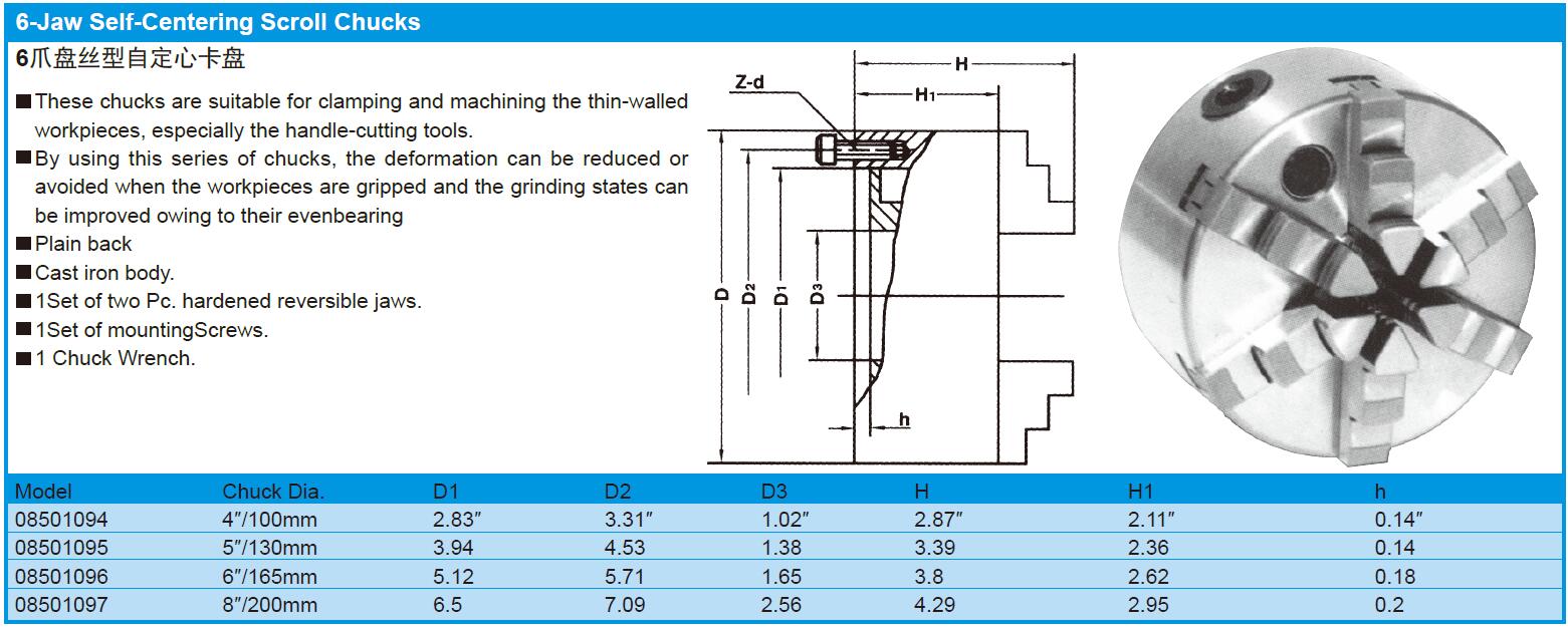 6-Jaw Self-Centring Scroll Chucks