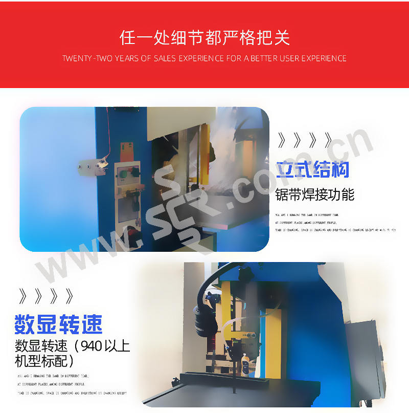 ·效率高、耗能少、占地面积小·可调节工作台角度·锯床本体自带焊接机,锯条焊接方便快捷·锯条选择性跨度大,3mm-13mm的锯条任意选用·可根据锯条宽度的不同,实现曲线锯切应用领域:模具、家具、卫浴、陶瓷、铸造、鞋、纸等多种行业,应用广泛
