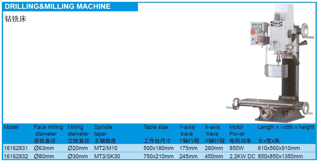 16162832 KT16-162-832 φ80mm φ30mm 450mm MT3/SK30 750×210mm 850×850×1350mm 2.2KW DC 24925.20