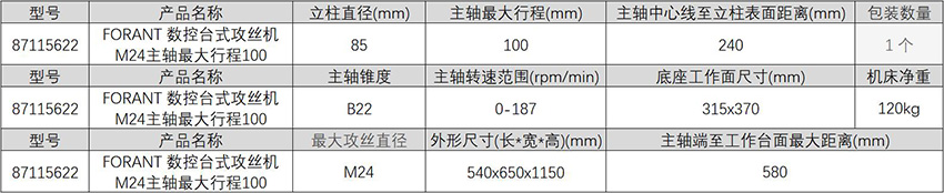 A37984 87115622 M24 85mm 100mm 240mm 580mm 540×650×1150mm B22 0-187rpm/min 315×370mm - - 120kg 1 个 42900.00