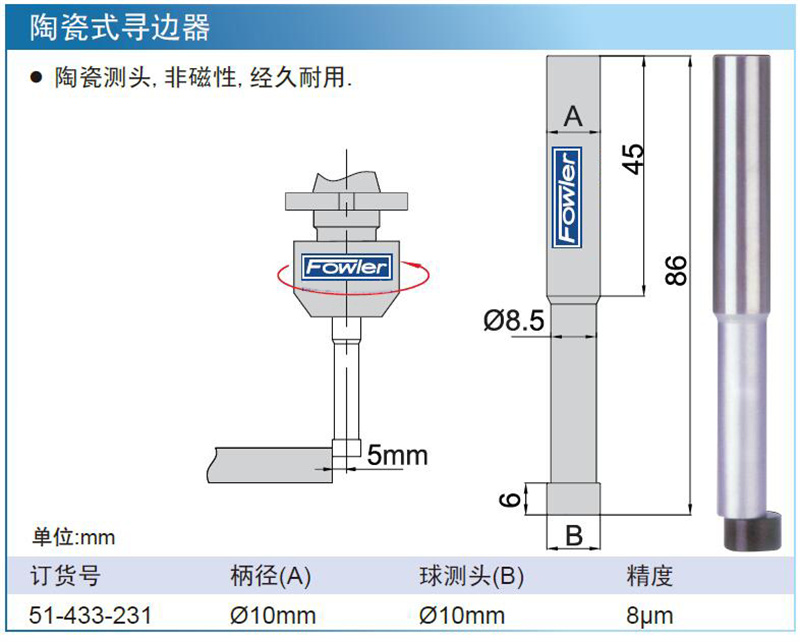 ·陶瓷测头,非磁性,经久耐用.