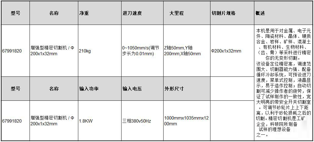 ·本机是用于对金属、电子元件、陶瓷材料、晶体、硬质合金、岩样、矿样、混凝土、有机材料、生物材料、(齿、骨)等采料进行精密你的无变形切割。 ·该设备定位精密高,调速范围大、切割器能力强、配备循环冷却系统,可预设进刀速度,菜单式控制,液晶显示,易于造作控制; ·自动切割可减少操作者的疲劳,保证了试样制作的一致性,宽大明亮的带安全开关切割室。可调节砂轮片上上下距离,以利于砂轮损耗之后的切割。GTQ-5000A型精密切割机是工矿企业,科研院所制备高品质试样的理想设备之一。