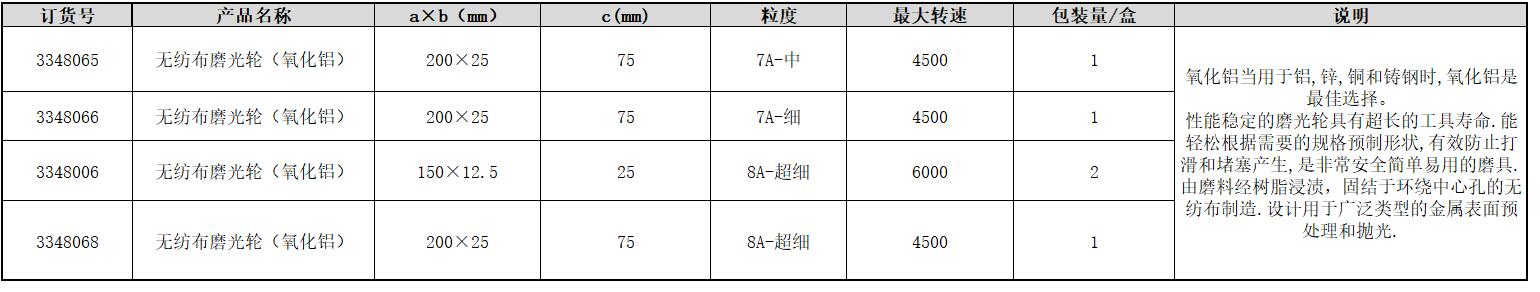 订货号 制造商型号 外径 磨料 粒度 连接方式 包装数量 c 较大转速 包装量/盒 价格 购物车