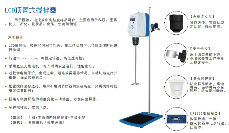 ·配置搅拌桨穿透孔,用户不用调节仪器的安装高度,只需搅拌杆的安装位置即可;