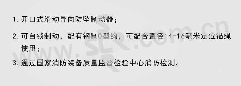 ·有钢制O型钩,可配合直径为14-16毫米的定位锚绳使用