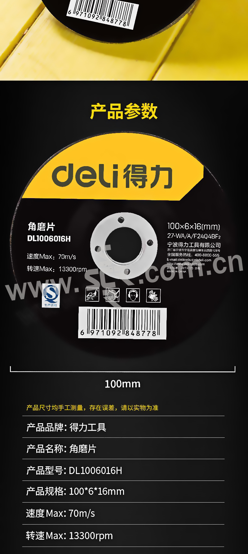 DELI/得力 角磨机磨片 DL1006016H 27A 100mm 黑色 1片