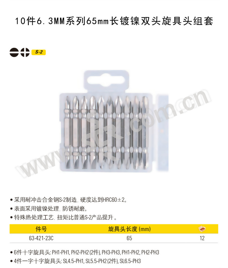 STANLEY/史丹利 6.3MM系列65mm长镀镍双头旋具头组套 63-421-23C 10件 透明塑盒 1套