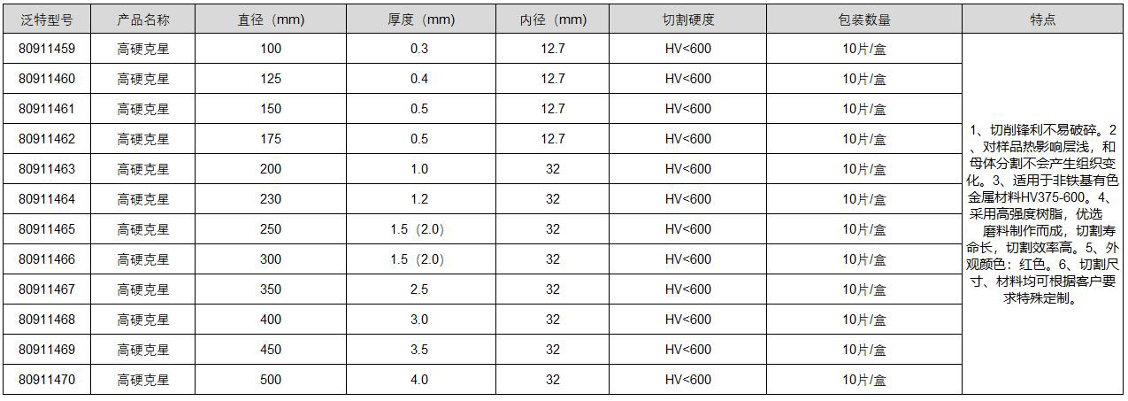 订货号 制造商型号 盘片直径 孔径 粒度 最大转速 包装数量 适合加工材质 厚度 切割硬度 价格 购物车