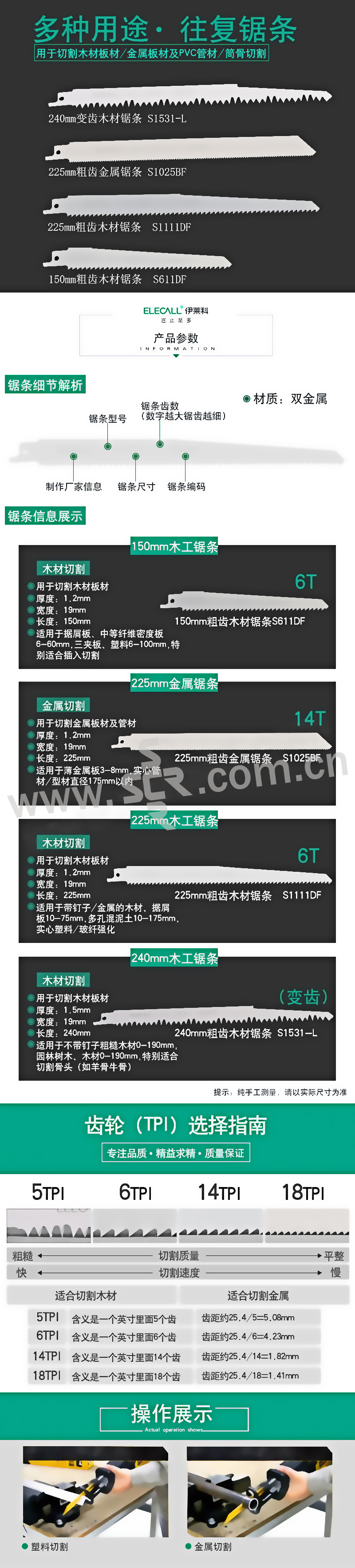 ELECALL/伊莱科 往复锯条 S611DF 木材锯条 1根